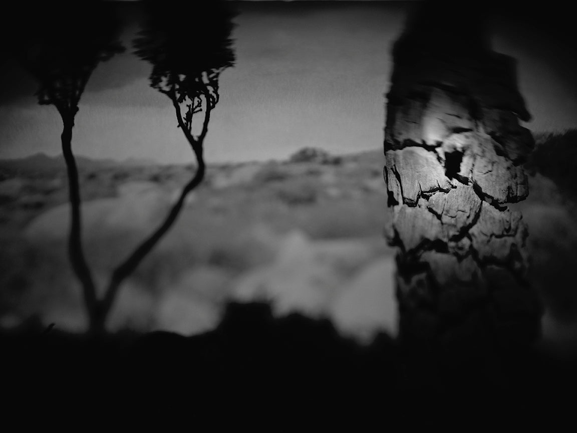 These are landscapes assembled in the studio from collected objects found in daily commutes and nature walks, around the U.S. and abroad.Originally, these botanicals were accumulated unconsciously, but later intentionally. These are constructed tableaux landscapes, reintroduced and recomposed, a New Re Order. Identity, function, and relativity are observed through the displacement and replacement of plant life. Although this plant life lives as compositions, narratives emerge from the stage settings. The flora and fauna assume personal qualities and begin a dialog and life of their own. A sense of wonder and loneliness cultivates. Inanimate objects acquire a voice and presence in these dreamscapes, as remnants of a disappearing Eden.